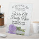 This beautiful self-standing pedestal sign will let your guests know that there is no seating plan so they can sit wherever they like. It features a simple yet elegant design with a single long-stemmed lavender purple coloured rose reflecting in a pool of water. Text reads: Come as you are, stay as long as you can, We're family now, so there's no seating plan. Perfect way to invite your guests to mingle and meet each other.