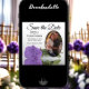 These beautiful save the date cards are the perfect way to let your friends and family know about your upcoming wedding. They feature a floral design that is both modern and elegant with a single long-stemmed lavender purple coloured rose reflecting in a pool of water with waves and ripples with your photo in an oval shaped frame. The caption reads Save the Date with space for your names, the date, and location on a classic white background. The back is a marbled light purple colour.