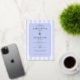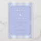 This elegant wedding invitation features a classic design with vertical blue and white stripes, creating a balanced and sophisticated background. The soft lavender color palette adds a serene touch, while the centered ornate border frames the text beautifully. With a formal serif font, the invitation highlights the names of the couple as the focal point, surrounded by essential event details. Its clean layout and generous spacing ensure clarity and readability, making it perfect for a timeless and refined celebration.