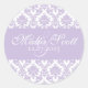 Elegant Lavender White Damask Wedding Favour Classic Round Sticker