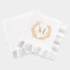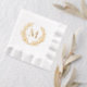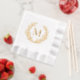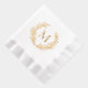 Elegant personalised foil napkins feature a leafy botanical crest design with two intersecting laurel branches. Personalise the classic serif monogram letter with your last name initial.