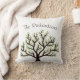 Elegant Leafy Green & White Last Name Family Tree Cushion