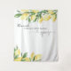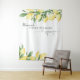 The delicate strokes of watercolor paint used to create the lemons and leaves create a stunningly realistic and fresh feel. The design is both elegant and playful, with the bright yellow lemons popping against the soft white background. The phrase "She found her main squeeze" adds a charming touch to the tapestry, conveying the joy and excitement of the upcoming wedding. Overall, this tapestry is a stunning piece of art that would make a lovely addition to any bridal shower decor. See full collection here: https://www.zazzle.com/collections/she_found_her_main_squeeze_lemon_bridal_shower-119867915803999104