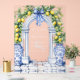Welcome your guests with heartfelt gratitude using this beautifully designed wedding sign, inspired by the timeless elegance of a sun-kissed garden. Featuring a graceful arch of lush greenery intertwined with vibrant lemons, this stunning sign is framed by classic pillars and adorned with exquisite blue ornate vases, creating a sophisticated and charming aesthetic. Designed as a meaningful alternative to individual thank-you cards, this elegant sign allows you to express your appreciation to your loved ones in a thoughtful and visually captivating way. The refined typography complements the graceful design, making it a perfect addition to your reception décor. A lovely and stylish way to share your gratitude while enhancing the beauty of your celebration.