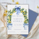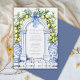 Invite your guests to a celebration of love and timeless beauty with this stunning wedding invitation. Featuring a breathtaking arch of lush greenery intertwined with vibrant lemons, this design evokes the romance of a sun-kissed garden. Elegant pillars frame the scene, while exquisite blue ornate vases on each side add a touch of sophistication and European charm. The formal typography enhances the refined aesthetic, creating an invitation that exudes grace and elegance. Perfect for a classic and romantic wedding, this design sets the tone for an unforgettable day filled with love and joy.