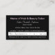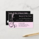 Remind new customers and existing clients of their upcoming hair salon appointment with these elegant, soft pink and black leopard print hair and beauty salon business cards, embellished with a glamourous floral swirl filigree. Personalise these chic and stylish animal print appointment reminders by adding the name of the certified beautician or professional hairstylist, beauty boutique business hours, and custom message. Either keep the existing appointment reminder text or leave the customisable text template blank so you can write in your own information.