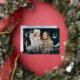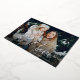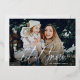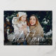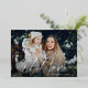 Elegant holiday card featuring your horizontal photo on the front with "Let it Snow" displayed in a silver foil script with your family name shown below. The let it snow holiday card reverses to display your custom message and a wintry watercolor snow background.