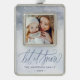 Elegant holiday ornament with your photo with a wintry watercolor snow background. "Let it Snow" is displayed in a navy blue hand-lettered script with your family name and the year shown below.