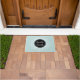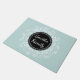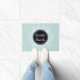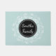 Contemporary door mat with mint blue floral wreath and personalised text.