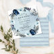 Elegant light blue quinceañera invitation with gorgeous blue watercolor flowers in a variety of blue tones around beautiful light blue foil texture circle. Modern handwritten calligraphy details. Back with beautiful light blue foil background and pale blue glitter stripes. Ability to make text size, colour, style and position by selecting customise further. Invitation with area for your Mass ceremony and reception details, which if you like, can be changed to reception/dinner and dance. This same invitation is also available in Spanish. Ideal for light blue, sky pastel blue quinceañeras.