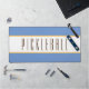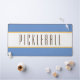 This sleek, sporty design features a white horizontal centre stripe outlined in light yellow. The PICKLEBALL text inside the centre stripe can be personalised. The background stripes are vibrant light cornflower blue.