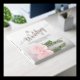 This gorgeous wedding guest book features a design that is classy, stylish, glam, and romantic with a photo of a single long-stemmed light blush pink coloured rose lying on its side mirrored in a pool of water. The cover text is printed in foil with elegant script calligraphy reading "the wedding of" with your names and wedding date. The timeless classic design will stun your guests, and the book will serve as a beautiful memento of your special day that you can cherish for years to come.