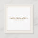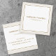 Square, white, professional business cards or personal profile cards with light tan brown borders. Customisable name and title/company name on the front. On the back are customisable template fields for name, title/company name/speciality and contact information. A minimal and classy design