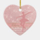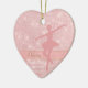 This elegant ornament features a pink ballerina in pose against a pretty jewel like lighter pink background with tiny star lights. Her name is in dark gold on a semi transparent banner that is framed in gold. The back of the ornament has a heart shaped white field with more text fields for you to customise. The text field is framed with a faux diamond liner, and placed on the same pink lights background. Beautiful for your own special ballerina for Valentine's Day, her birthday, or any special occasion. Just customise the text!