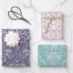 Elegant lilac, green, pink set of 3 wrapping paper sheets.