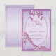 Beautiful elegant and classy, stylish feminine birthday invitation for women. Fashionable design of a pretty rhinestone jewel gem lilac stiletto high heel shoe, a glamorous posh matching colored jewel diamond bow on a pretty vintage pearl and lace mat, all on a stunning lilac background and a shiny glitter frame on a dark lilac border. Sophisticated birthday design suitable for any event. All text, font and font color is fully customizable to meet your requirements. If you would like help to customize your product or would like matching products please contact me through my store and i will be very happy to help you. Pearl mat by ©Hazel Kinvig-Paul www.design-a-dream.co.