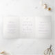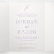 Elegant wedding tri-fold invitation featuring a classic design with your monogram in a script font along with your names and details in a traditional serif font.