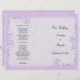 This design features a muted lilac patterned background accented by elegant art deco inspired scroll work. Shown here as a customisable wedding program, the text on this versatile design can be personalised for any occasion. We have a variety of colours available!