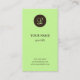 This elegant design with lime green background (front and back) and brown text features a brown circle at the top for your script initial/monogram. You must click on customise to add/remove fields or adjust alignment of the monogram as needed.