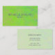 This beautiful, colourful, and elegant card is perfect for many professional uses. It has a sleek, minimal front and plenty of space for adding your contact information on the back. Change it up easily using the template fields to get the perfect card for you. The background artwork is a lovely lime green design modelled after marbled paper with subtle swirls of multiple colours. The back has the same design lightened up so you can more easily read your contact and company information.