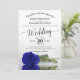 This gorgeous wedding invitation features a modern floral design with a single long-stemmed royal blue or cobalt coloured rose lying on its side reflecting in a pool with waves and ripples. The design is simple, elegant, romantic and sophisticated, with lacy script calligraphy and fully customisable content.
