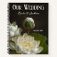 An elegant notebook featuring a painting of a lotus flower. On the back is a faux brown leather design. Beautiful as a wedding planning journal or customisable for other purposes, for instance a yoga studio.