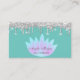 Elegant Lotus Silver Glitter Drips Mint Green Business Card