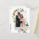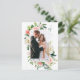 Elegant Watercolor Pink Blush Floral and Greenery Bride and Groom Love and Thanks Wedding Photo Thank You Postcard includes pink roses, white flowers and botanical greenery.