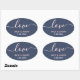 Elegant Love Script Navy & Blush White Wedding Oval Sticker