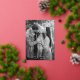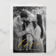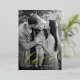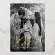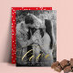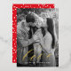 Elegant Valentine's Day card featuring your vertical photo with "Love" displayed in a gold foil calligraphy script. Personalise the photo Valentine's Day card with your custom greeting and family name. The foil Valentine's day card reverses to display a red and white heart pattern.