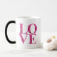 Elegant LOVE Square, Spring Pink Floral Lettering Magic Mug