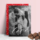 Elegant Valentine's day card featuring your vertical photo with "love" displayed in a white calligraphy script with an optional white gradient. Personalise the Valentine's day photo card with a custom greeting and your name. The photo Valentine's day card reverses to display a playful red and white heart pattern.