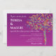 This modern wedding invitation features elegant lettering on a cassis purple background. The design features original artwork of a rainbow tree made of heart shaped leaves holding two lovebirds. With the rainbow colours of the tree, the invitation works great for LGBTQ couples, couples interested in crystals and chakras, and still be appropriate for any wedding.