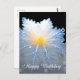 A single frozen luminous flower with water drops on petals personalised birthday postcard.
