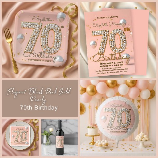 Elegant Blush Pink Gold Pearly 70th BirthdayDesigned by Kristina Lj Petrovska