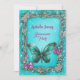 Are you ready to celebrate your 15th birthday in style? You deserve a fancy and sophisticated party that reflects your elegance and personality. That's why we have created this trendy Quinceanera invitation that features a stunning design of turquoise green with diamonds and classy bling sparkle jewels. The design also contains elegant and luxury butterflies in purple and turquoise colours that add a touch of magic and beauty to your special day.