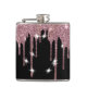 Elegant Luxury Faux Glitter Pink Rose Drip Hip Flask
