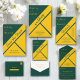 This elegant green and gold wedding table number is perfect for a modern wedding. the luxury design features elegant gold calligraphy on a green background.