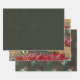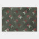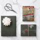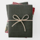 Elegant 3-sheet deep green, red, and gold Christmas holiday wrapping paper collection. Sheet 1 is a green burlap linen design. Sheet 2 is a red, green, and gold abstract tree design. And sheet 3 has metallic red berries and green leaves.