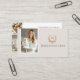Elevate your home bakery brand with our Elegant Luxury Home Baker Business Card Template by ©Moodthology Papery. This chic and classy design features a clean, sophisticated layout with a hand-drawn floral vintage gold floral crest on the front, perfect for displaying your monogram above your business name. Add your photo to personalize the card and make a memorable first impression. The reverse side allows you to showcase two additional photos, a QR code, and your contact info and social media handles, making it easy for clients to connect with you online. Ideal for home bakers, bakery businesses, catering services, and pastry chefs, this customizable template combines elegance and functionality, helping your brand stand out.