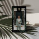 Create a refined first impression with our Elegant Luxury Real Estate Business Card Template. Designed for the discerning professional, this customizable business card features a full photo layout at the center, perfect for displaying your business portrait or brand image. The design combines modern elegance with tropical sophistication — showcasing regal palm leaf photography in the top left and bottom right corners and solid black accents in the opposite corners for perfect balance. A classic arched crest crowns the layout, adorned with our hand-drawn faux gold palm tree illustration and space for your two monogram initials on either side. Your name runs vertically along both sides of your portrait, while your professional title is elegantly displayed beneath. The reverse side provides room for a second photo or brand image, your logo, and all contact details in a sleek, minimalist format — creating a cohesive, high-end presentation. Perfect for real estate professionals, interior designers, attorneys, consultants, and luxury brand owners seeking a timeless, tropical-inspired identity. Design and layout by ©Moodthology Papery
