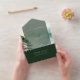 Inside text and accents is a combination of silver foil and sage green. Outside text is sage green on the dark alpine green. The inside panel is the same shade as the outside, but has been rendered semi-opaque to allow visibility of the mountain scenery.