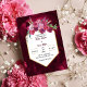 magenta pink and Burgundy flowers and leaves wedding invitation. This pretty wedding design showcases a gold frame with a watercolor roses and foliage in pink and Burgundy colours. The back is a rose in magenta pink colour.