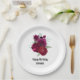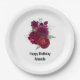 Elegant Magenta Rose Floral Bouquet Birthday Paper Plate