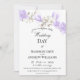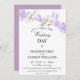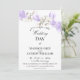 Elegant and gentle Wedding invitation design featuring watercolor Magnolia blossom art in white and purple.