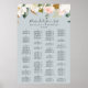 This elegant magnolia blue alphabetical seating chart poster is perfect for a modern classy wedding. This sign can be used to organise your guests alphabetically or by table number. The soft floral design features watercolor blush pink peonies, stunning white magnolia flowers with gold and green leaves in a luxurious arrangement on a light blue grey background. This wedding poster includes enough room for up to about 120 guests. Make room for more (or less) guests by clicking the "customise" button and decrease or increase the size of the font. In addition to the placement of each guest, personalise this sign with the names of the bride and groom and the wedding date.