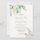 Your guest will love receiving this elegant white magnolia flowers and eucalyptus bouquet in watercolor with modern script and classic typography with wedding details on the back.