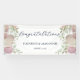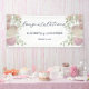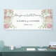 Elegant Magnolia Pink and White Floral Wedding Banner for your Reception Accessories. This hanging banner is designed with pink and white magnolia flower accents on a White background. The text includes: Congratulations, the Bride & Groom's First Names and Wedding Date. To personalise, simply insert your details into our easy template, replacing the sample text.
