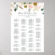This elegant magnolia white alphabetical seating chart poster is perfect for a modern classy wedding. This sign can be used to organise your guests alphabetically or by table number. The soft floral design features watercolor blush pink peonies, stunning white magnolia flowers with gold and green leaves in a luxurious arrangement. This wedding poster includes enough room for up to about 120 guests. Make room for more (or less) guests by clicking the "customise" button and decrease or increase the size of the font. In addition to the placement of each guest, personalise this sign with the names of the bride and groom and the wedding date.