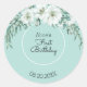 Elegant Magnolia White Pastel Green 1st Birthday Classic Round Sticker